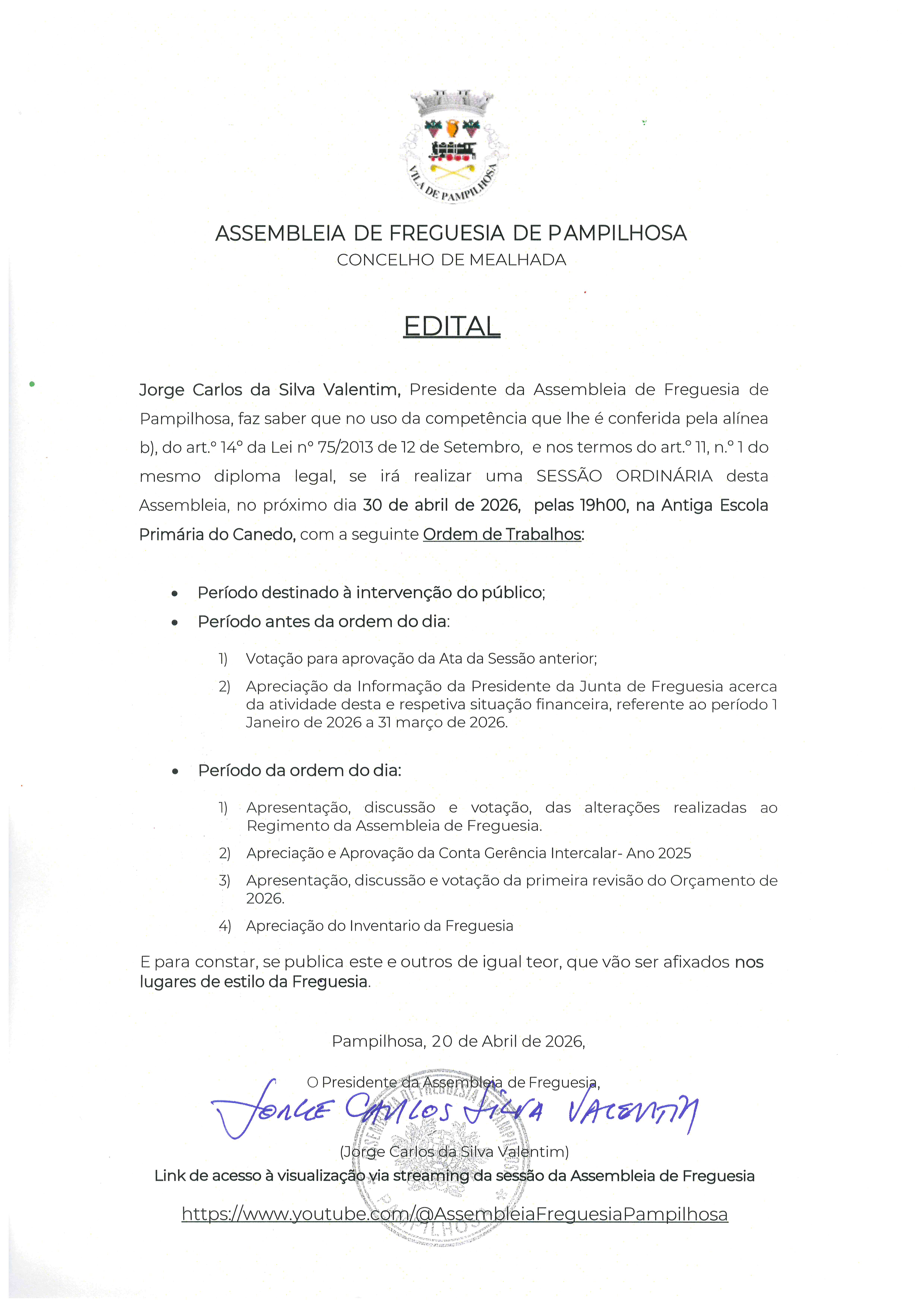 © 2026 Junta de Freguesia de Pampilhosa. Todos os direitos reservados | Termos e Condições